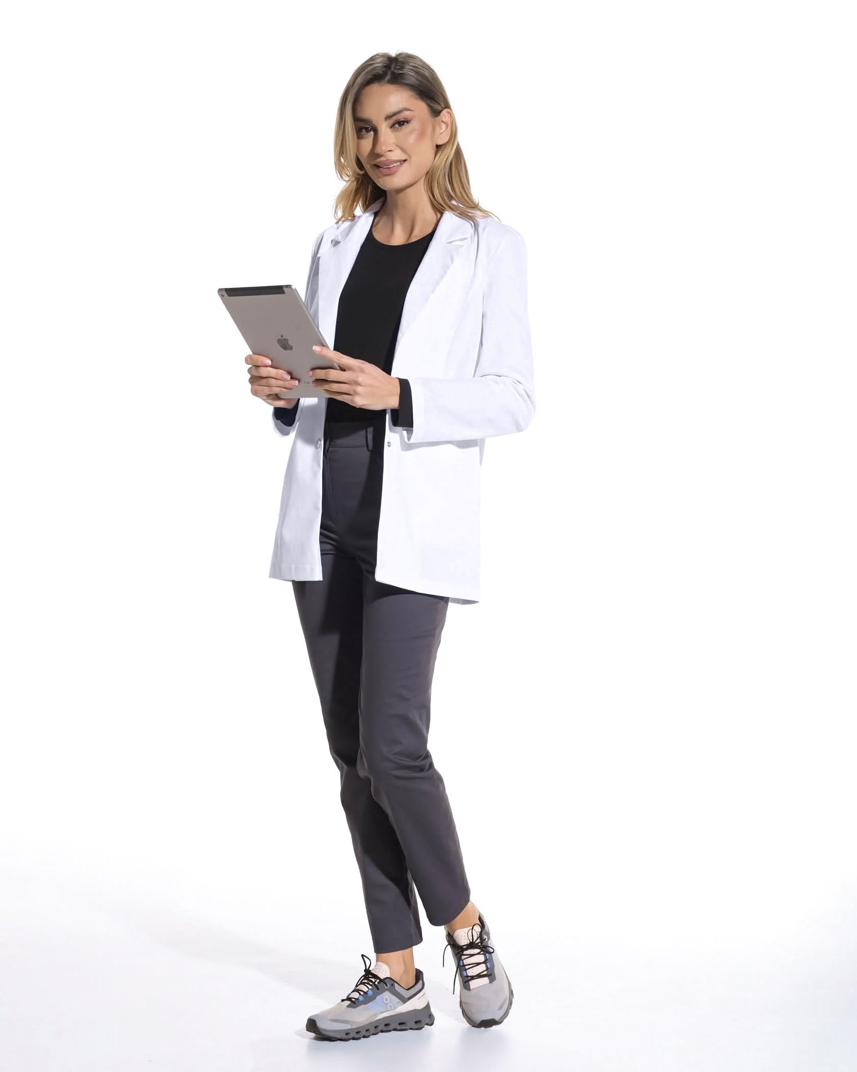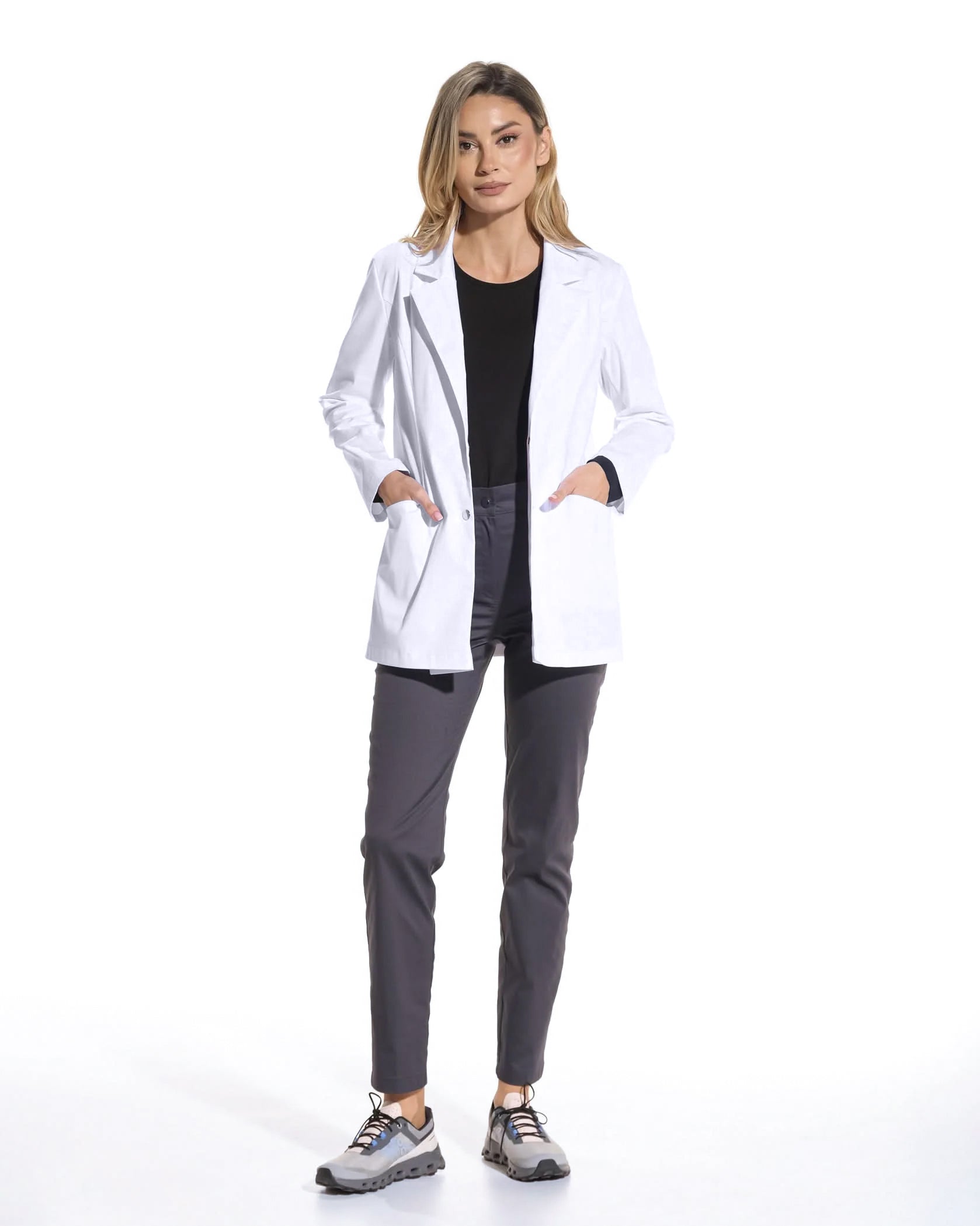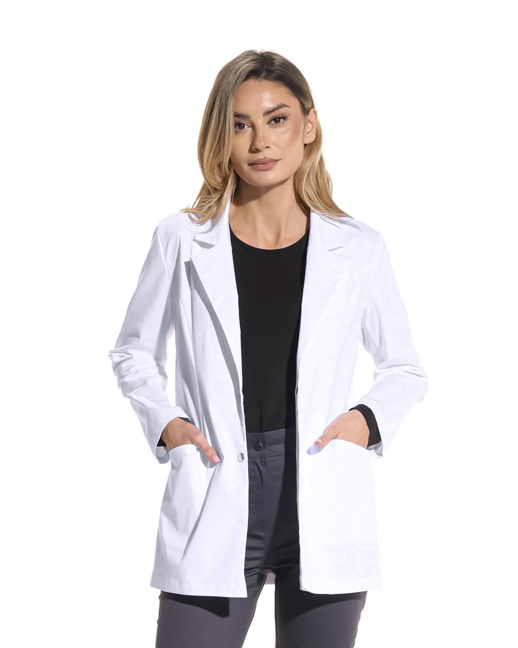 Der weiße Arztkittel Luna ist mehr als nur ein Kleidungsstück. Er ist ein unverzichtbarer Bestandteil der Arbeitskleidung, ein Symbol für Verantwortung, Professionalität und Hingabe an die Patientenversorgung. Er ist die perfekte Kombination aus Eleganz und Funktionalität, und der ergonomische Schnitt und das elastische Material sorgen für angenehmen Tragekomfort ohne Bewegungseinschränkungen, während das moderne Design für ein gepflegtes und raffiniertes Aussehen sorgt.