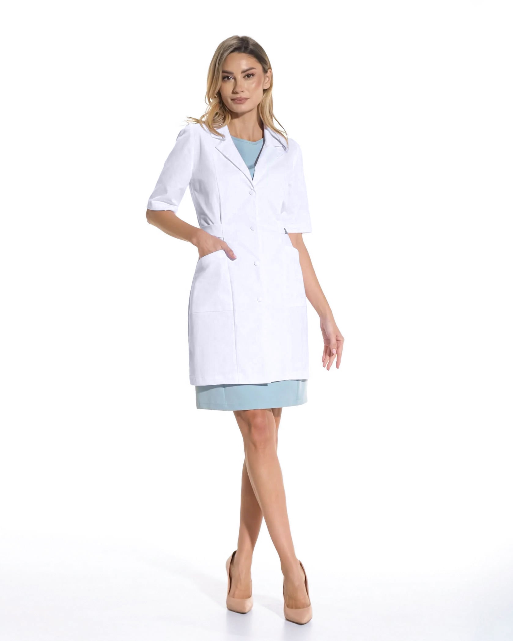Der weiße Selene-Arztkittel ist mehr als nur ein Kleidungsstück. Er ist ein unverzichtbarer Bestandteil der Arbeitskleidung, ein Symbol für Verantwortung, Professionalität und Hingabe an die Patientenversorgung. Er ist die perfekte Kombination aus Eleganz und Funktionalität, und der ergonomische Schnitt und das elastische Material sorgen für ein angenehmes Tragegefühl ohne Bewegungseinschränkungen, während das moderne Design für ein gepflegtes und raffiniertes Aussehen sorgt.