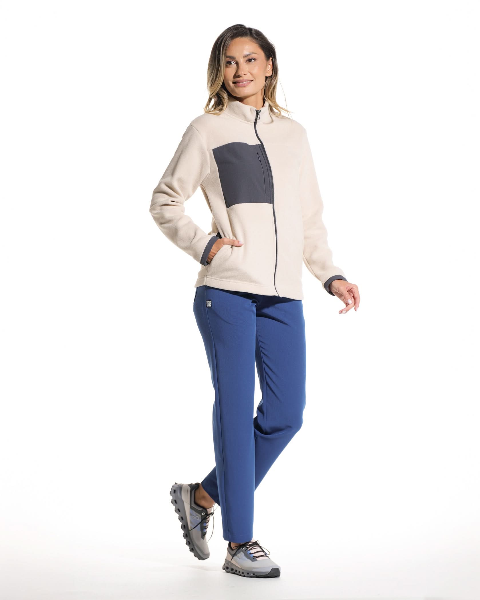 Medizinische Jacke CLOUD, grau, mit Druckknopfverschluss und 3 Taschen. Die Jacke verfügt über zwei Seitentaschen und eine Brusttasche mit Reißverschluss.
