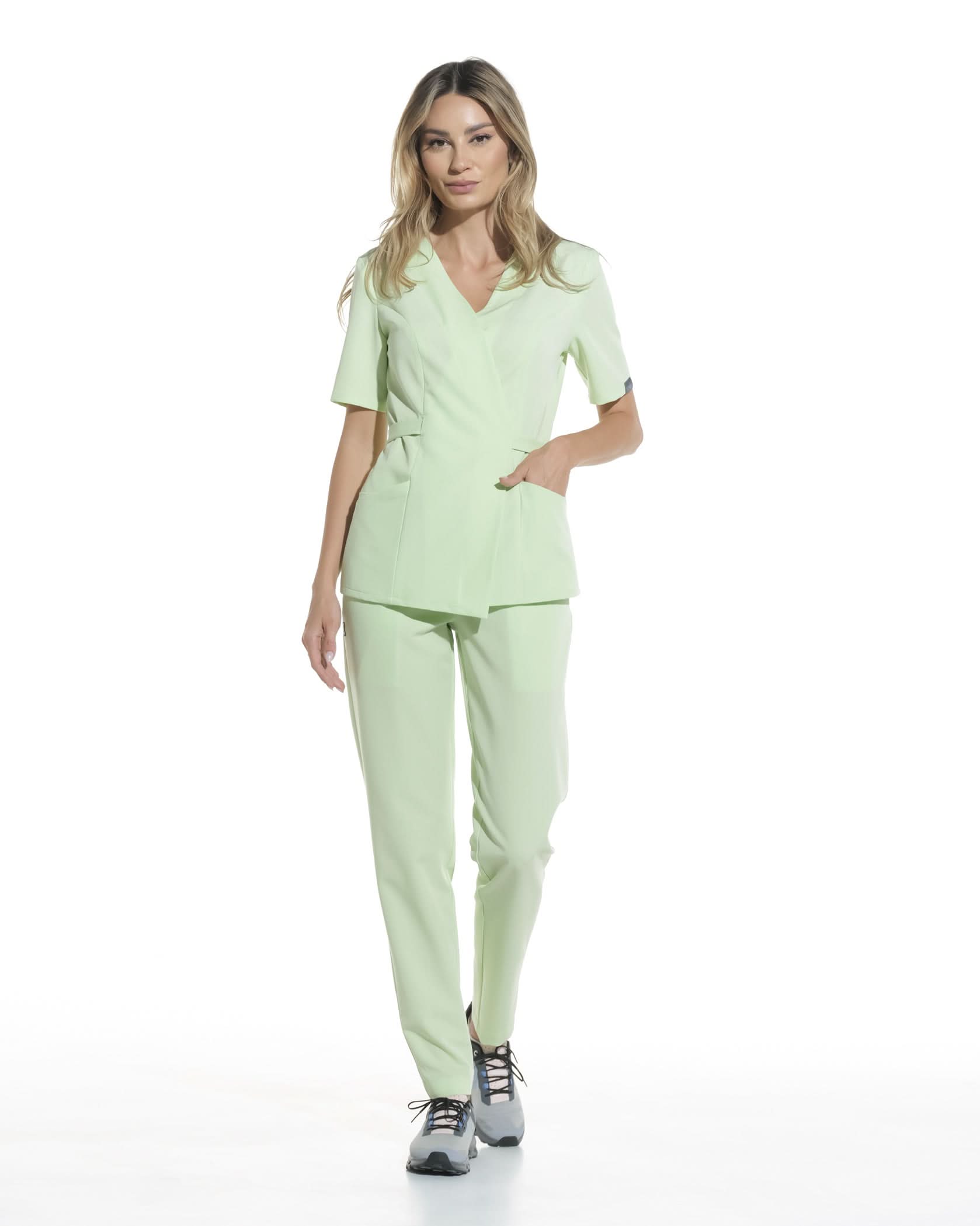 Bluza medicala petrecuta SIENA crem, din tesatura elastica, prevazuta cu 2 buzunare laterale. Model prevazut cu cordon regalbil in talie. Materialul din care este confectionata bluza este moale, respirabil, provine din materie prima regenerabila, avand atat elasticitate, cat si rezistenta la sifonare.